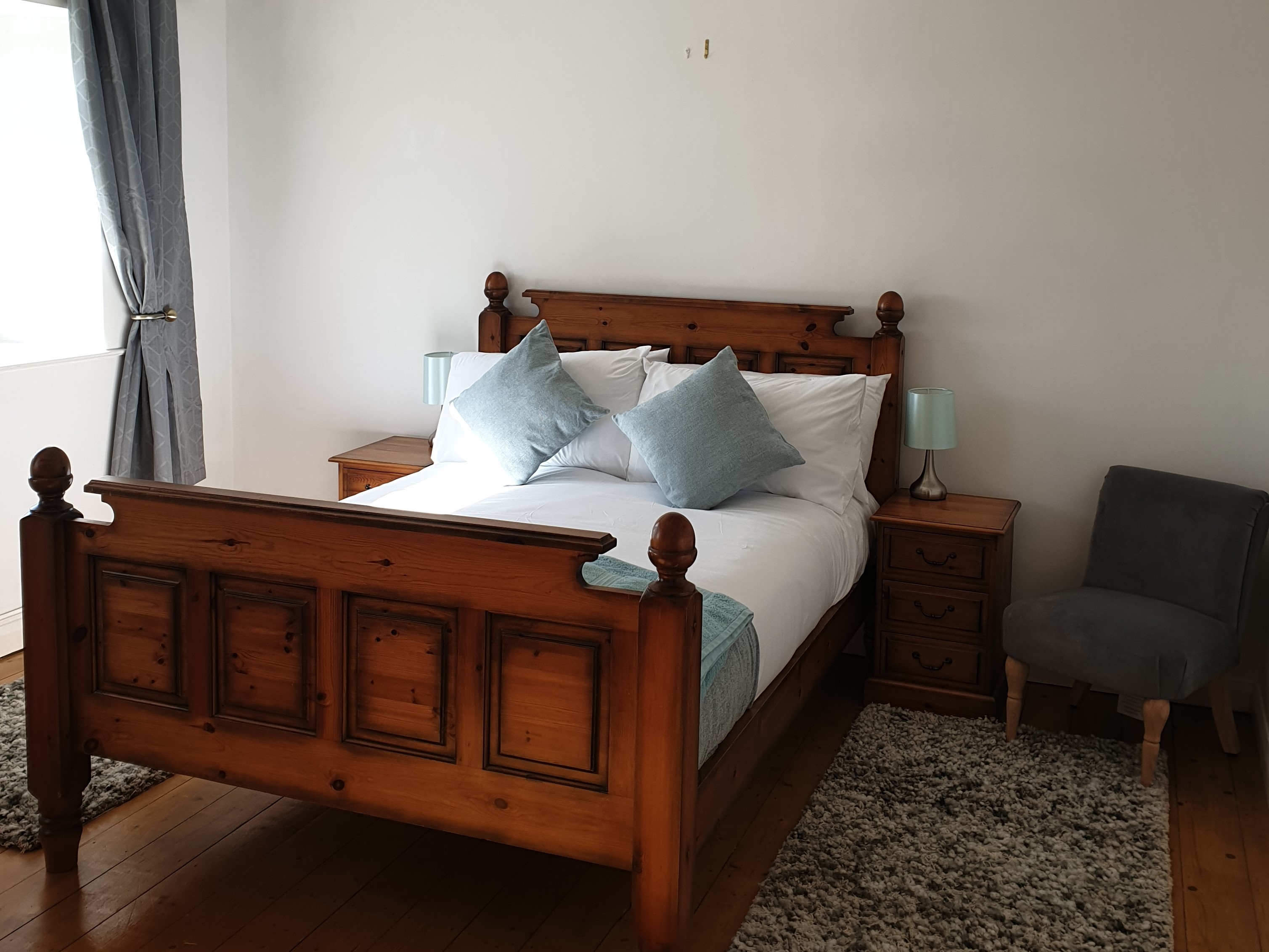 Upstairs there is a generous sized double bedroom with TV and a bathroom with an over the bath rainforest shower.
